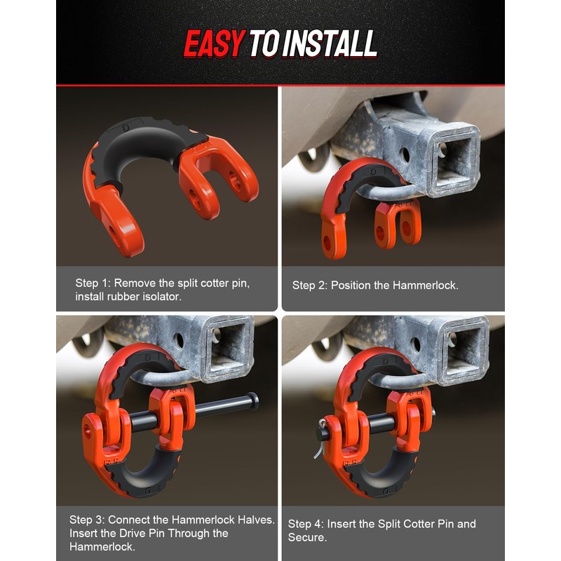 - Coupling Links with NOISE-REDUCING Rubber Isolator: This hammerlock chain connector equipped with 4 detachable rubber isolators, it can reduce operational noise, eliminate vibration, prevents bumper scratches, minimize wear on vehicles, protect vehicles during towing, and also the isolators can extend the lifespan of chain coupling links and surrounding components