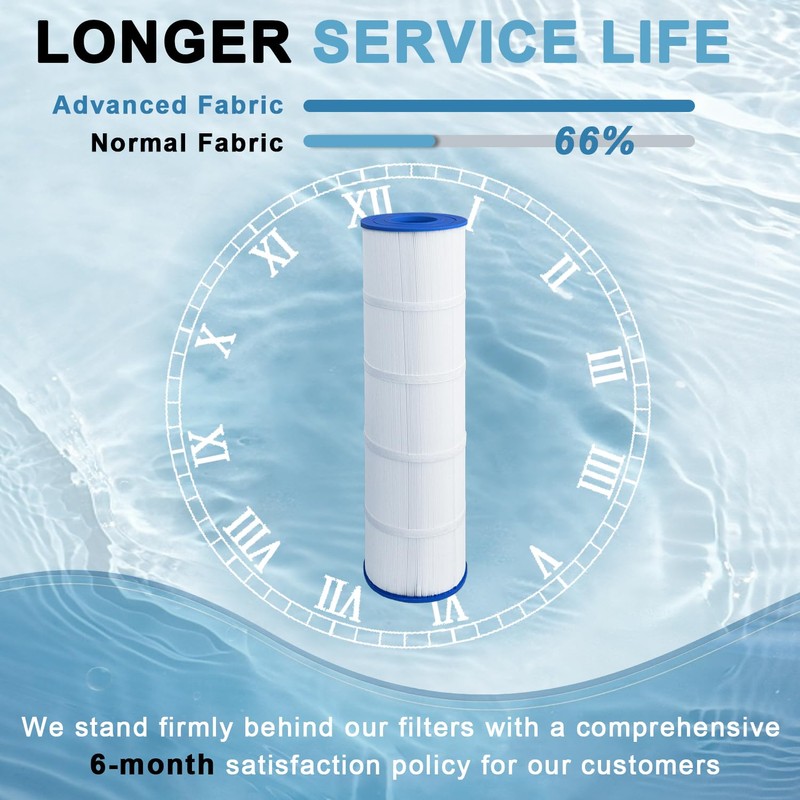 • Robust Construction: This R0462400 pool cartridge filter is engineered with ABS Material Core (3x stronger than PP) +25% thicker fabric withstand 3000 GPH pressure, Chlorine Resistant Top & Bottom End Caps, Tough Bonded Straps. There is no need to worry about it being cracked during normal use