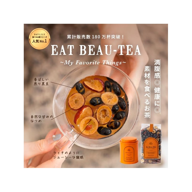 DAYLILY EAT BEAU-TEA ~My Favorite Things~ Eat Tea, Jujube, Longan, Longan, Black Beans, Caffeinated Japanese and Chinese Blend Tea, 1 Can, 2.2 oz (65 g)