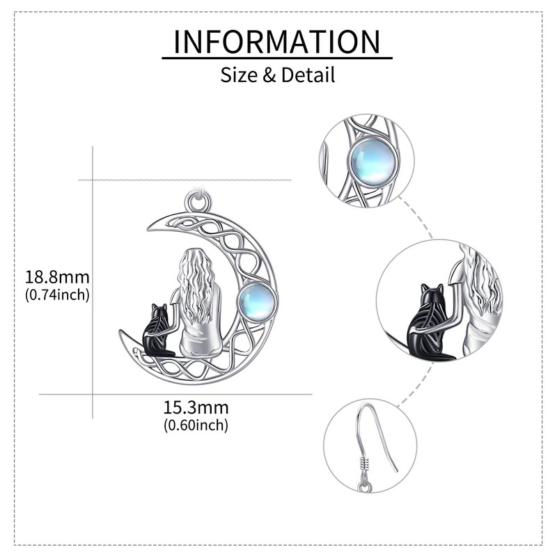 - Design: cats are cute, and women are gentle. When you sit on the moon with a cat and a person, peace, beauty and harmony are reflected in one earring. Give this cat earring to the lady who loves cats next to you.