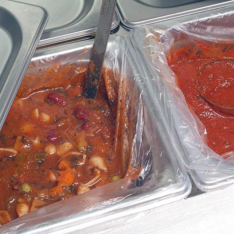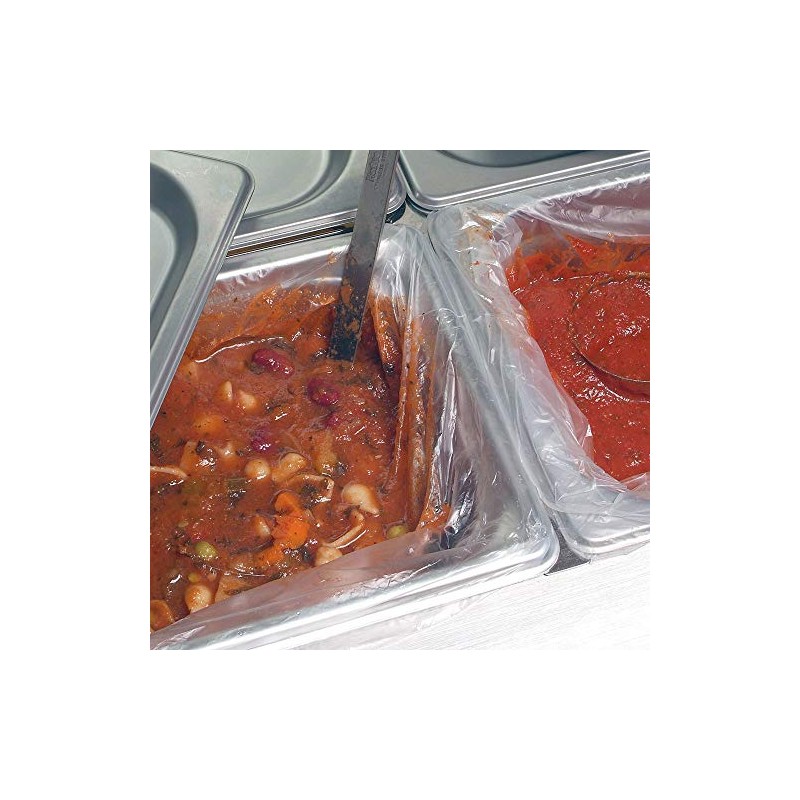 DayMark Steam Pan Liners are ideal for steaming, boiling, and microwave applications. Liners create a barrier between the food and the cooking surface allowing you to discard the mess instead of soaking or scraping. The food may be saved as leftovers and reheated in the same liner and pan. Liners save on labor, reducing operating cost and improving food quality. May be used up to 220°F. There are many different sizes. Eliminate burned or dried-on food.