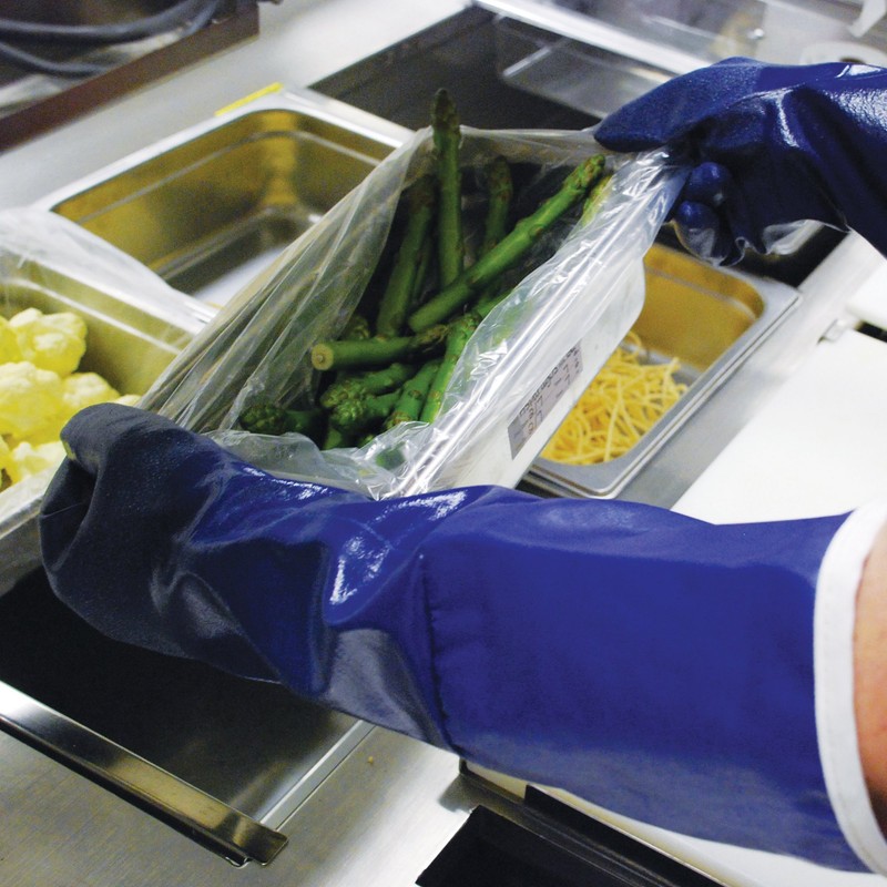 • Provide sanitary protection while working in hot and wet applications such as dishwashing and changing steam pans