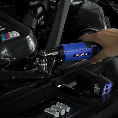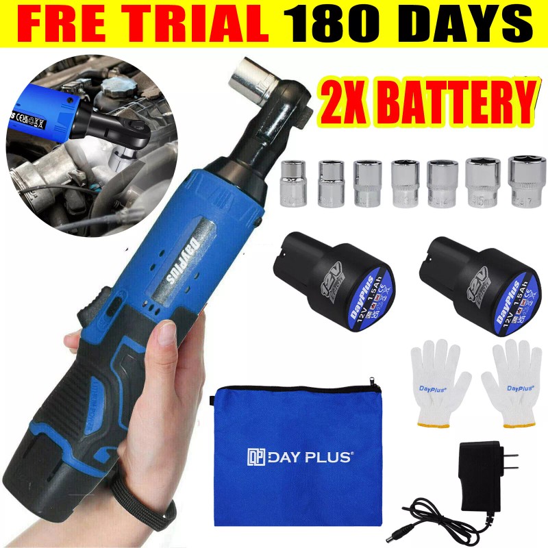 Dayplus 3/8'' Cordless Impact Wrench 2PCS Battery Impact Drive Ratchet Rattle Nut Gun