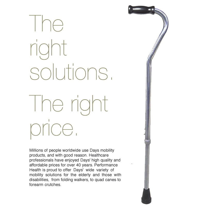Days Standard Bariatric Offset Cane with Tall Height Adjustment, Bariatric Cane with Rubber Tip, Heavy Duty Walking Cane for Weight Bearing, Mobility Aid for Elderly, Silver with Black Handle