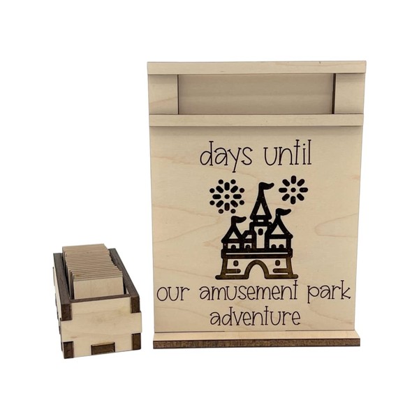 This cute "Days Until Our Amusement Park Adventure" wood countdown will help you get excited about the big day. This countdown is engraved and cut with our laser cutter on wood. You will receive one countdown, all the numbers shown and a cute little box to hold the numbers not in use. Each countdown measures approximately 4.5" wide by 6" tall with a base measuring 1.25". Thank you for looking!