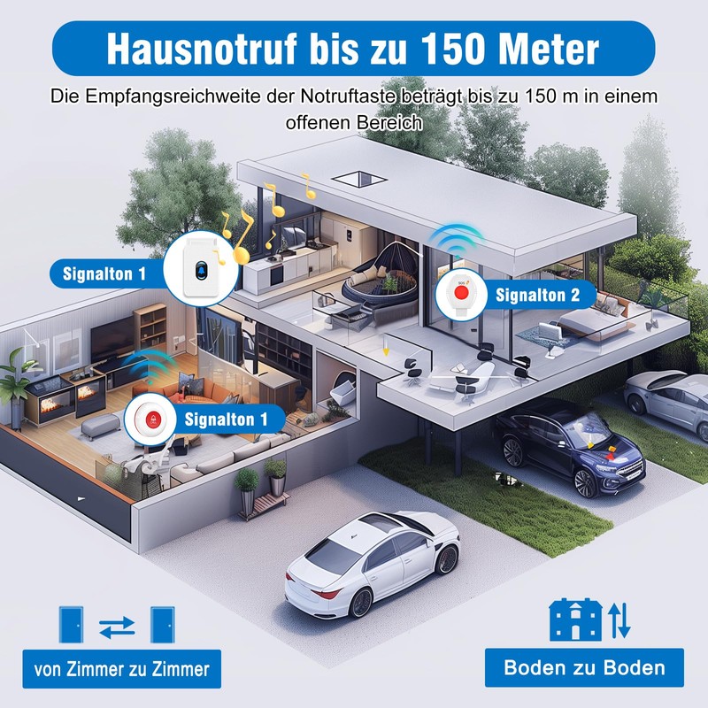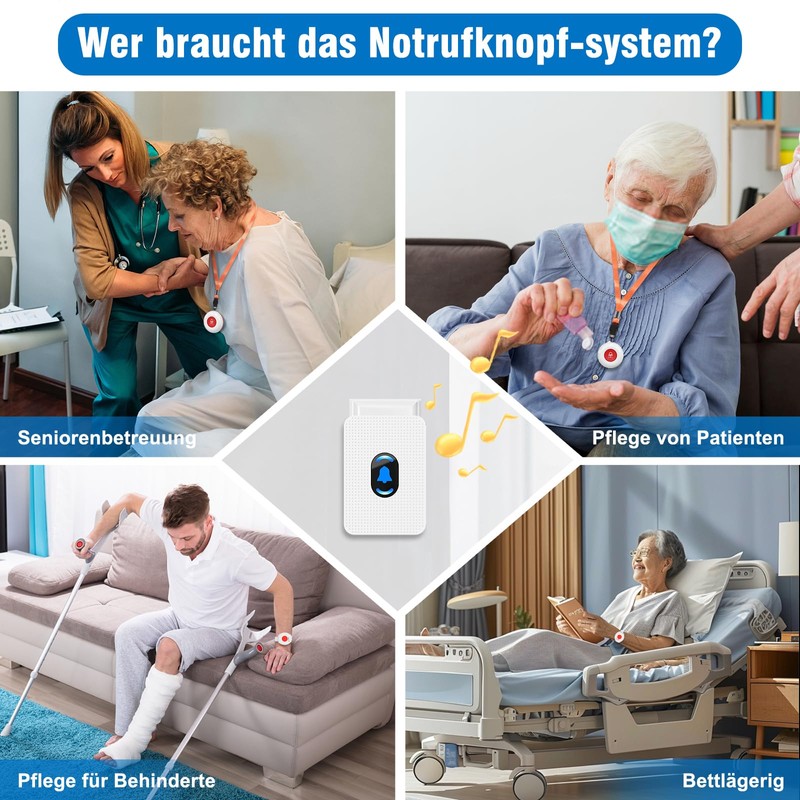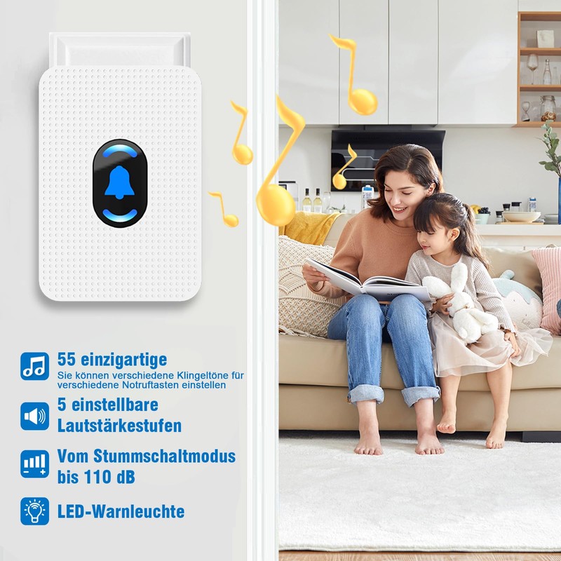 - Get help quickly and efficiently: If help is needed, a simple press on the panic button or the guard pager is enough to send an alarm directly to the pager receiver of the caregiver. This emergency pager system is suitable for both homes and hospitals, nursing homes and many other places. With a range of up to 30 metres, the caregiver can do their work around the house
