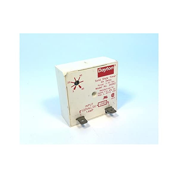 DAYTON 2A562 ON DELAY, 120VAC/DC, 3-60SEC, SPST, TIME DELAY Relay