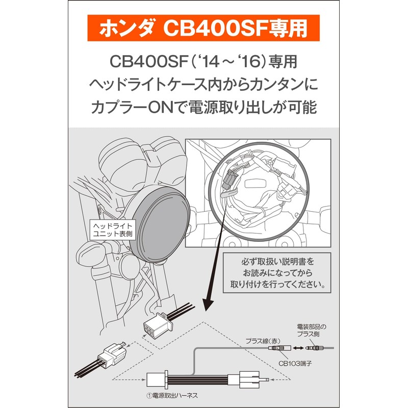 - Specifications 1: Power connection location: Inside headlight case; Allowable power: 12V/3A.