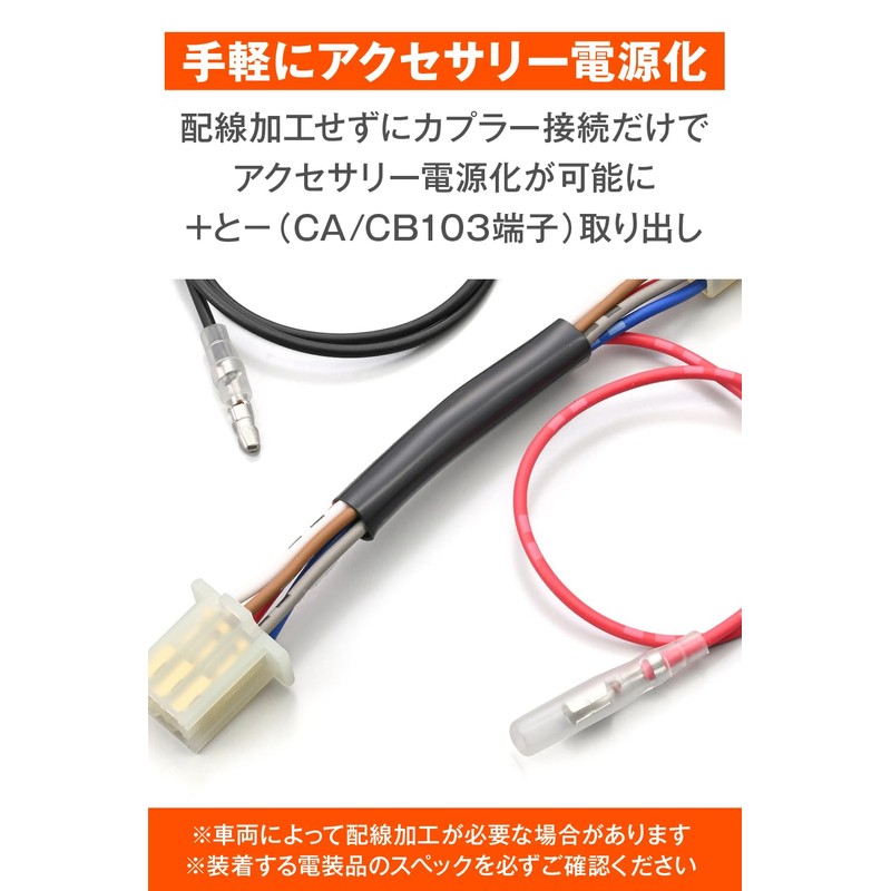 - Applications: A dedicated power supply harness that is convenient for powering smart phones and GPS.