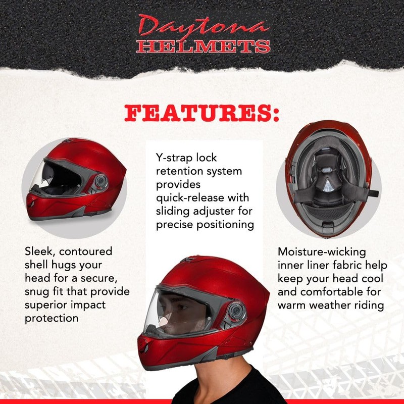 Daytona Helmets Glide Modular Motorcycle Helmet - DOT Approved Flip Up Helmet - Bluetooth Ready Full Face Motorcycle Helmet with Dual Visors for Men, Women & Youth
