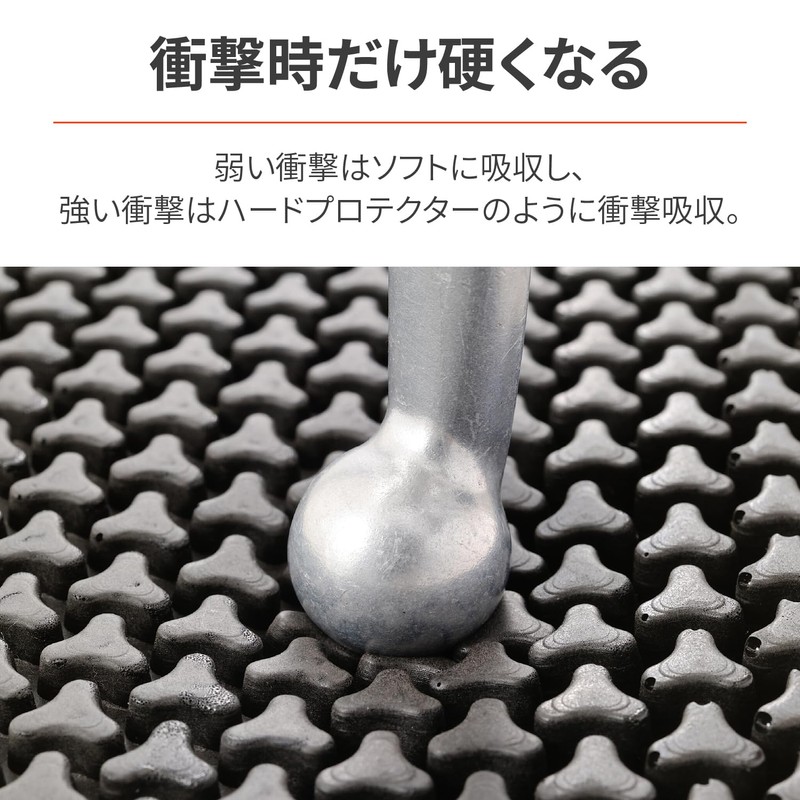 - Special foam urethane that instantly cures when impact is applied. Absorbs softly during weak impacts and absorbs hard at strong impact
