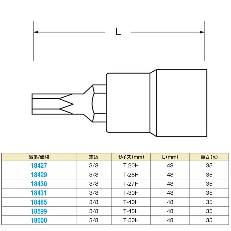 Daytona T-50H Motorcycle Tool Hexalobura (Tolx with Pin) Socket, Prevents Fiddling, 3/8 Inch Drive Angle 18600