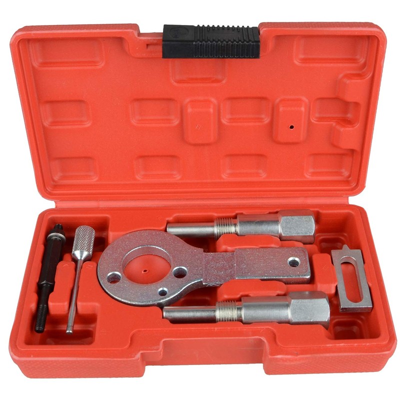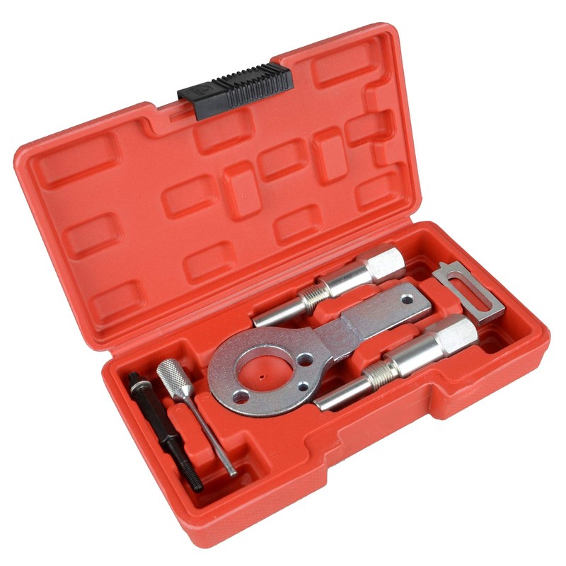- Includes flywheel holding tool to remove/install the crankshaft pulley, crankshaft locking tool and camshaft adjustment tools.