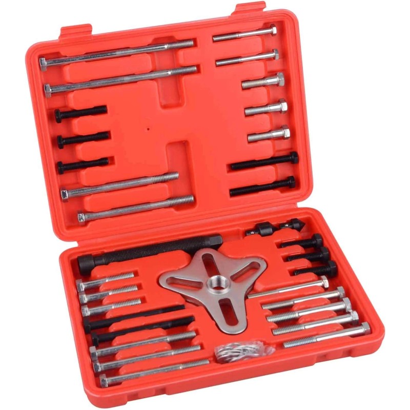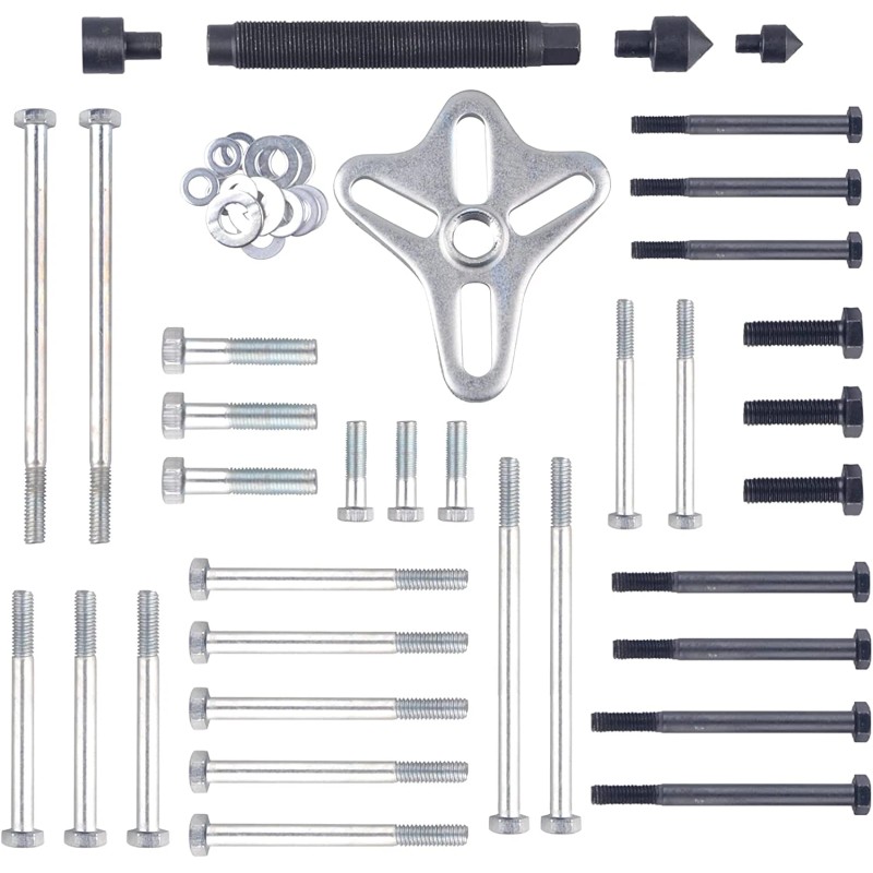 - Set includes yoke, pressure screw, and pulling screws in a molded storage case