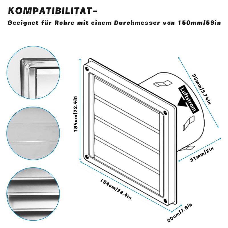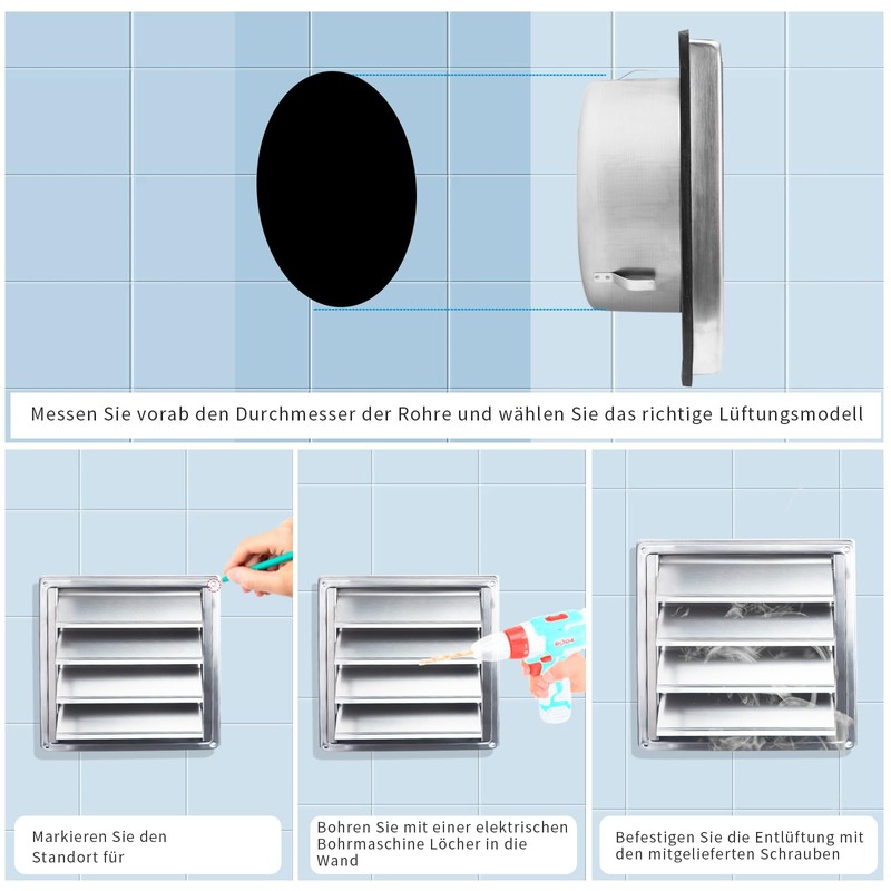 - Versatile: stainless steel ventilation grille suitable for indoor and outdoor use. This ventilation grille is perfect for air outlets of tumble dryers, bathrooms, kitchens, garages, cooker hood extractors, etc