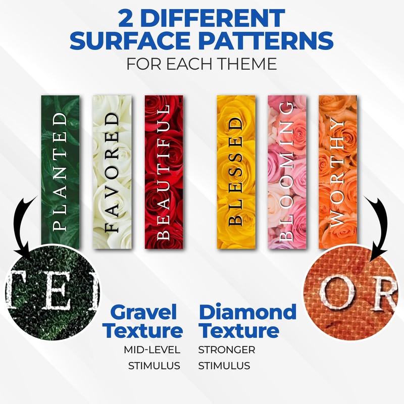 - ✨【Striking Visuals】Enjoy the calm strips for anxiety sensory stickers with two different tactile surface designs - Granular and water drop. Perfect sensory items for classroom for fidgeters and those who enjoy the feel of different texture who also want to be encouraged with affirming words. The sticker's size is 4 inches x 1 inch.