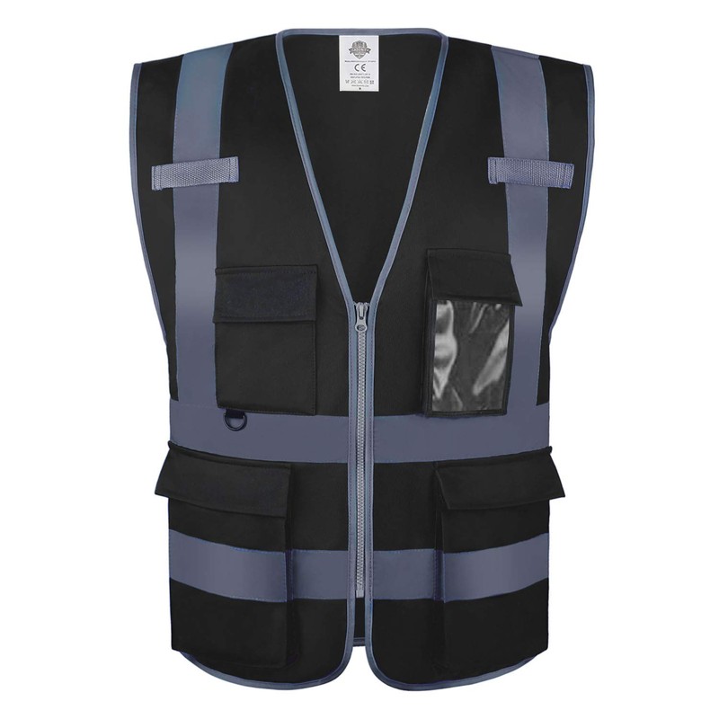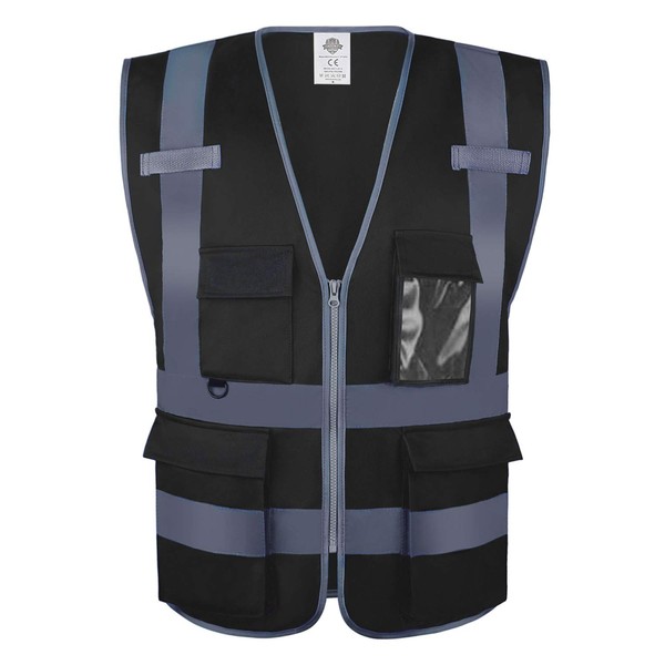 Dazonity High Visibility Safety Vest with Multi Pockets and Zipper, XL,Reflective Strips, Fit for Men & Women, Work, Construction,Cycling, Runnning, Surveyor, Volunteer (Black-XL)