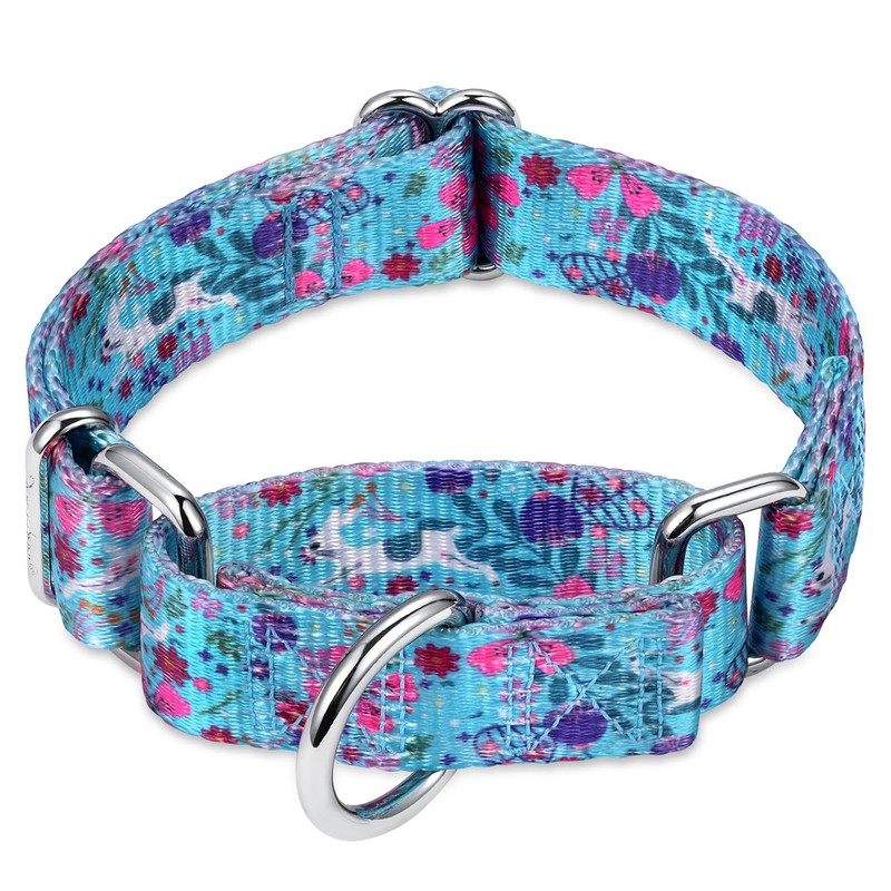 Dazzber Forest Elf Series Martingale Dog Collars Silky Soft with Unique Patterns for Medium and Large Dogs (Medium, 1Inch Wide, Spirit Rabbit-Mint Blue)