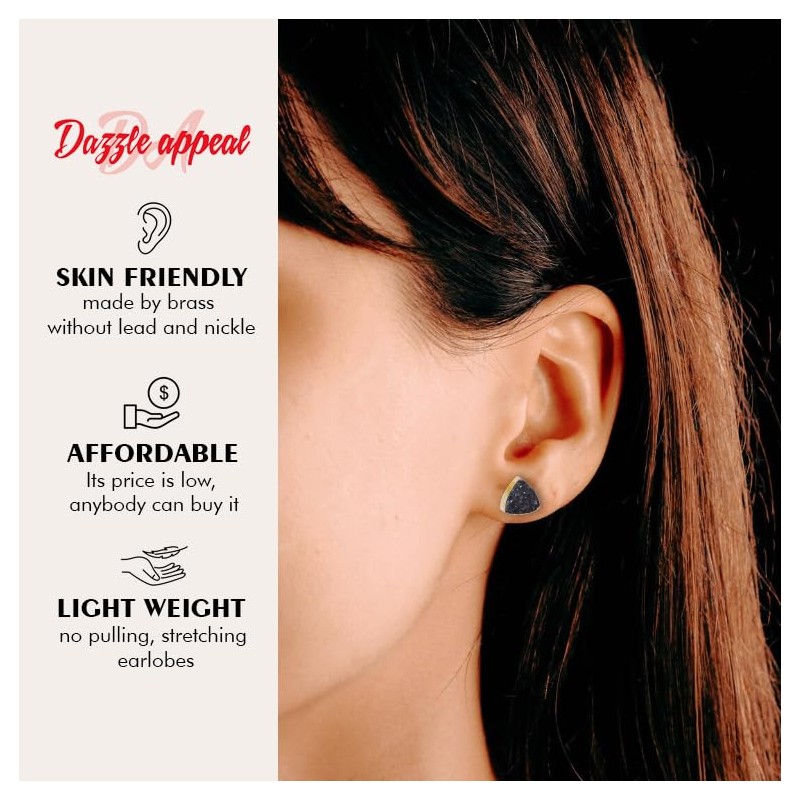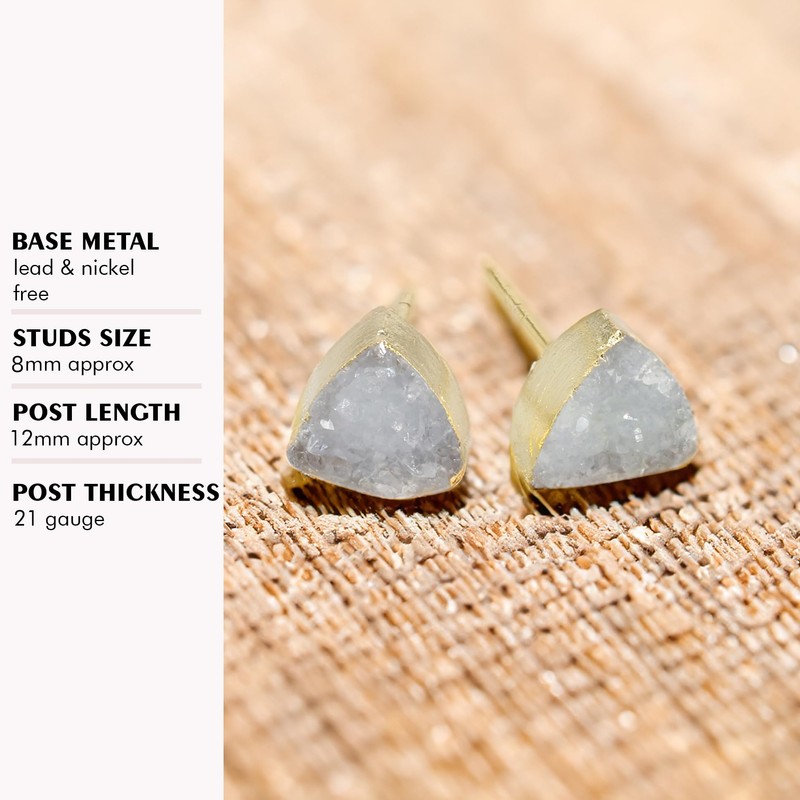 - Unique trillion shapes: these earrings feature a stunning trillion-shaped druzy stone, a beautiful twist on classic round studs.