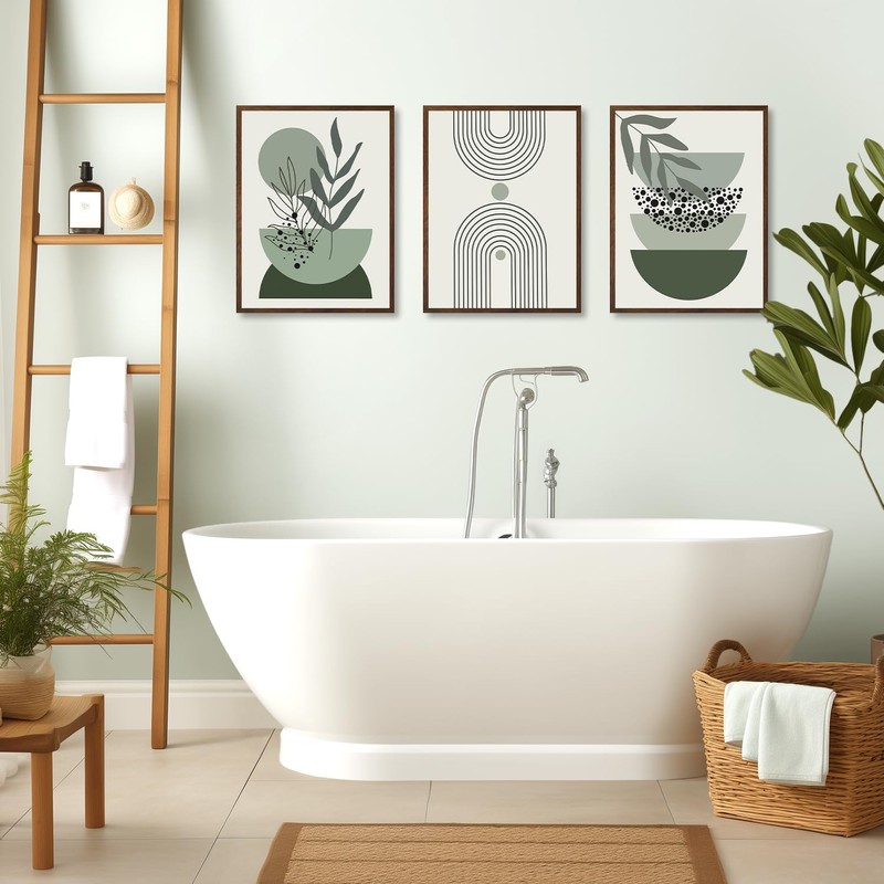 Dazzlewall Sage Green Boho Wall Decor Poster Abstract Geometric Wall Poster for Bedroom Living Room 12x16 in Unframed Set of 3