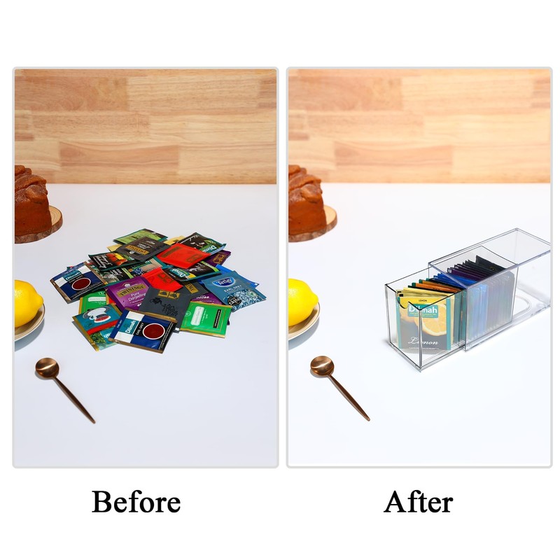 - Function: Stackable units make efficient use of space, organize tea boxes, and increase kitchen storage capacity