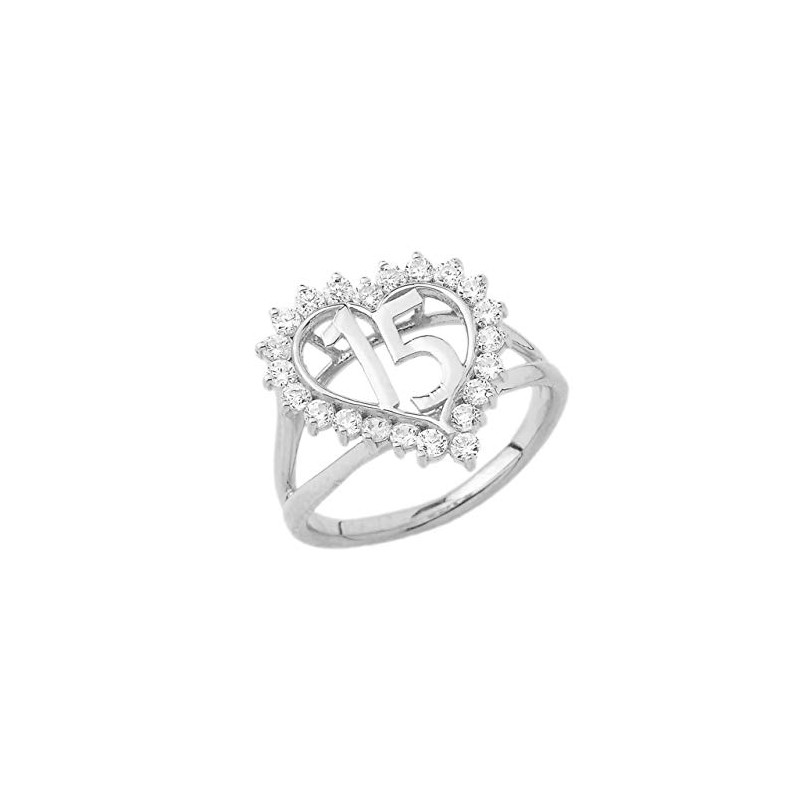 This sterling silver ring showcases a split shank style Open Heart-Shaped Quinceanera ring with the number “15” in the center and accented with 22 White Cubic Zirconia gemstones. Make her a birthday she will never forget with a luxurious charming ring that will never lose its shine. Individually hand polished to a lasting high sheen polish finish. This pendant is both of unsurpassed quality and impressive design.