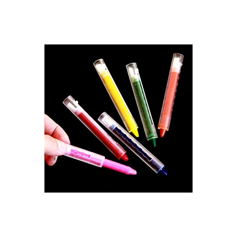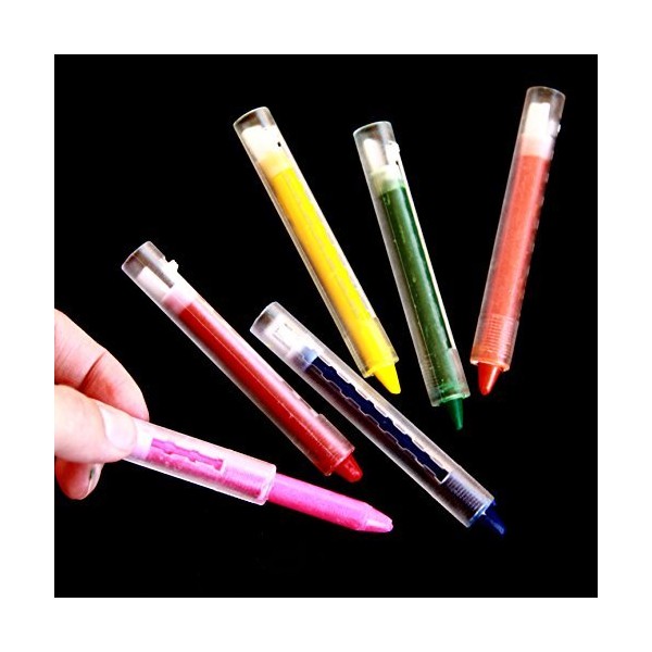 Match your face to your costume or dress with our colored face paint. The Dazzling Toys face paint stick Includes 6 colored face paint sticks. Colors: Red, Pink, Green, Blue, Yellow, Orange. Each Face paint stick measures: 4". Manufactured by Dazzling Toys.