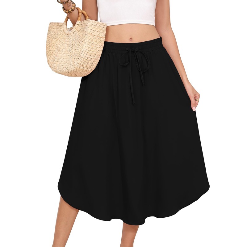 DB MOON Womens 2025 Midi Length Black Skirt Business Casual Flowy Curved Hem Skirts with Pockets Teacher Outfits XL