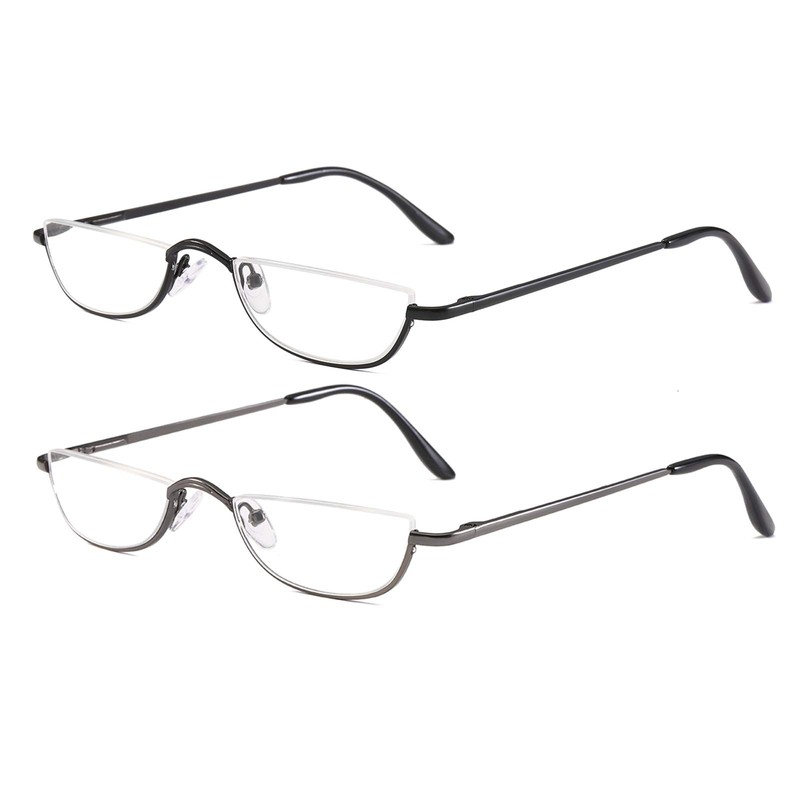 DBEFTLI Half Frame Reading Glasses - Half Moon Readers with Spring Hinge for Women Men (2 PCS in Pouch) 2.50