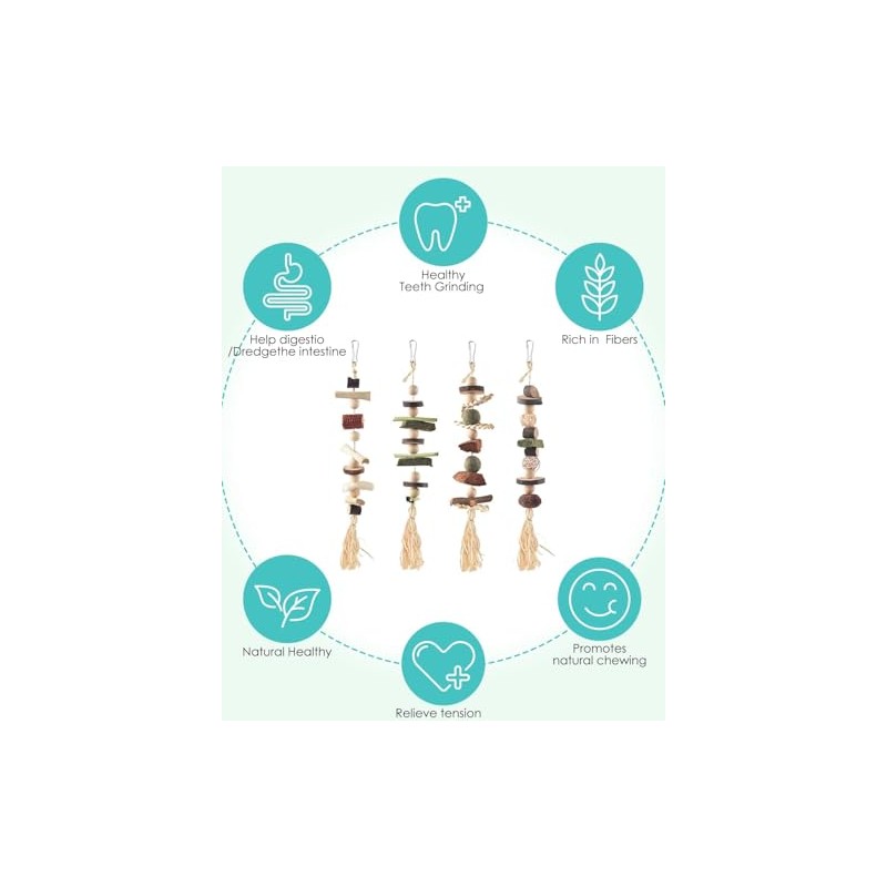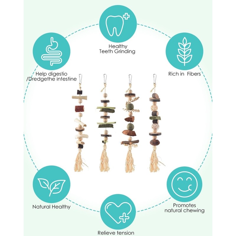 DBNESS 4 Pcs Bunny Chew Toys for Teeth, Hanging Rabbit Chewing Toy Treats with Timothy Grass & Natural Apple Wood, Improve Small Rodent Dental Health for Guinea Pig Hamster Chinchilla Rat Gerbil