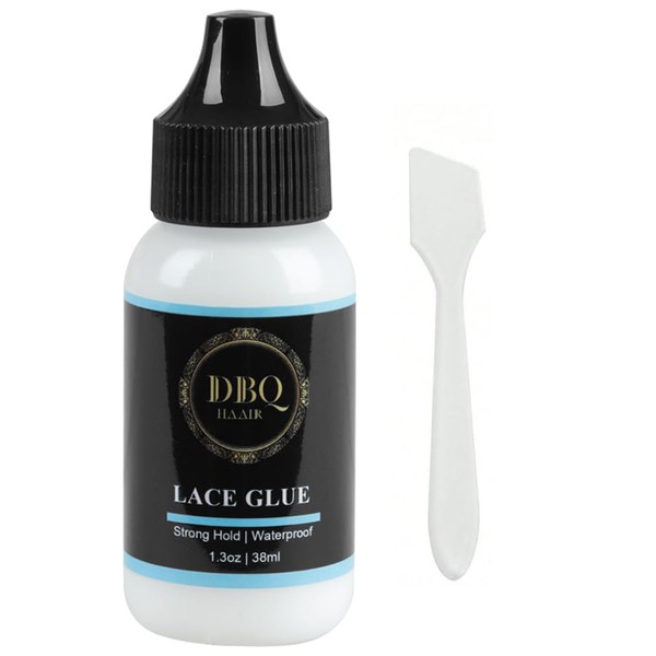 DBQ HaAIR Waterproof Lace Glue for Wigs Strong Hold Glue for Wigs and Hair Systems - Invisible Bonding - Formulated for Oily Skin - Non Toxic - Humidity Resistant & Water- Resistant-1.3OZ/38ML