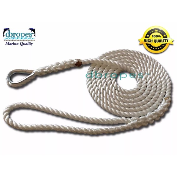 dbropes 3 Strand Mooring Pendant 100% Nylon Rope 1/2 In X 8 Ft with Thimble TS 6400 Lbs