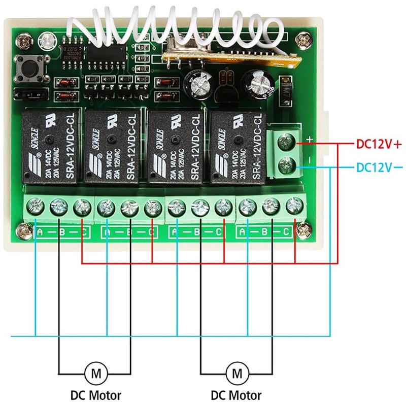 DC 12 V Wireless Radio Remote Control Switch, 433 MHz RF Relay Receiver Module with 4 Transmitters for Smart Home Remote Switch