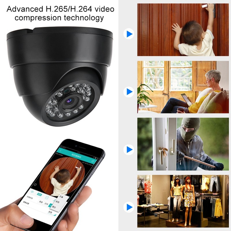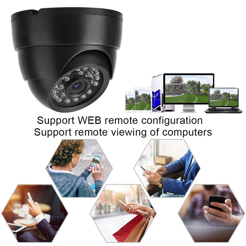 1、It is made of ABS plastic casing, which is solid and durable to use. 2、Using advanced H.265/H.264 video compression technology, 24pcs infrared LEDs, maximum 20 meters infrared night visual range. 3、Support motion detection alarm recording, mobile phone push alarm information. 4、Support local and remote control. 5、Support remote viewing of computers, and also fit for Android, iPhone, iPad remote viewing.