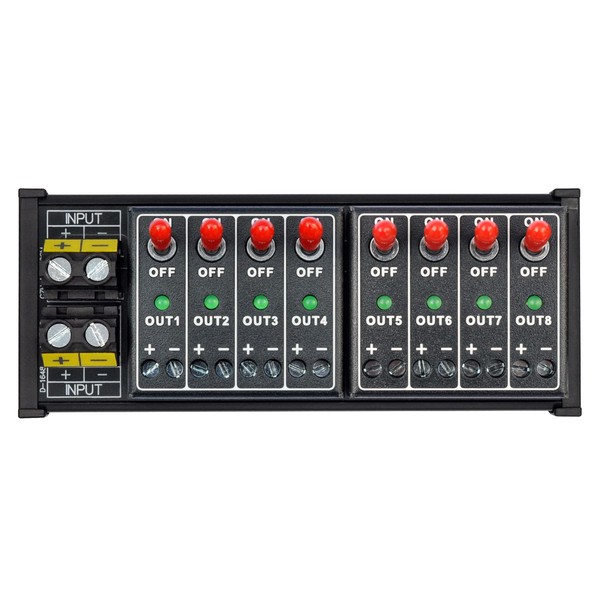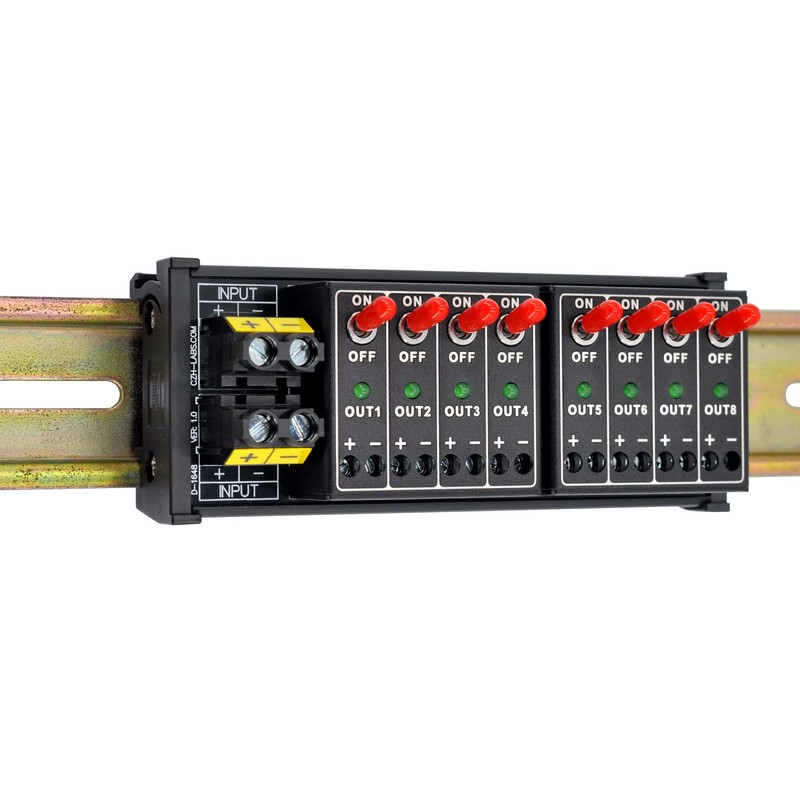 DC 8 Channel Toggle Switch Power Distribution Module, DIN Rail Mount