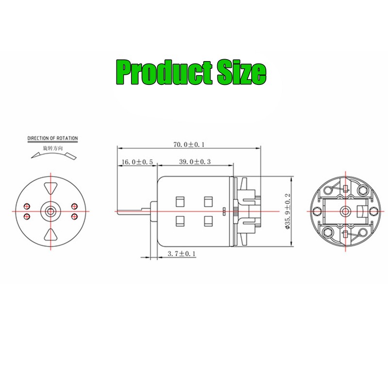 1、Powerful Function: This DC brushed motor is powerful, suitable for a variety of high speed car models, climbing cars, big foot, drifting, speed run, etc., you can choose according to your actual needs. 2、D Shaped Shaft: This DC brushed motor adopts D shaped shaft, which is not easy to slip during installation and saves your installation time. 3、External Extended Carbon Brush: This DC brushed motor has external extended carbon brushes with excellent tooling, so you can make reasonable adjustments according to the usage conditions when using it. 4、Pure Copper Wire Winding: The rotor part of this DC brushed motor is made of pure copper, with low resistance and high conductivity, which increases the motor torsion and improves your experience. 5、Application: This DC brushed motor is suitable for various toy cars, boats, intelligent electronic applications, etc. You can use this DC brushed motor with confidence when you meet the right equipment.