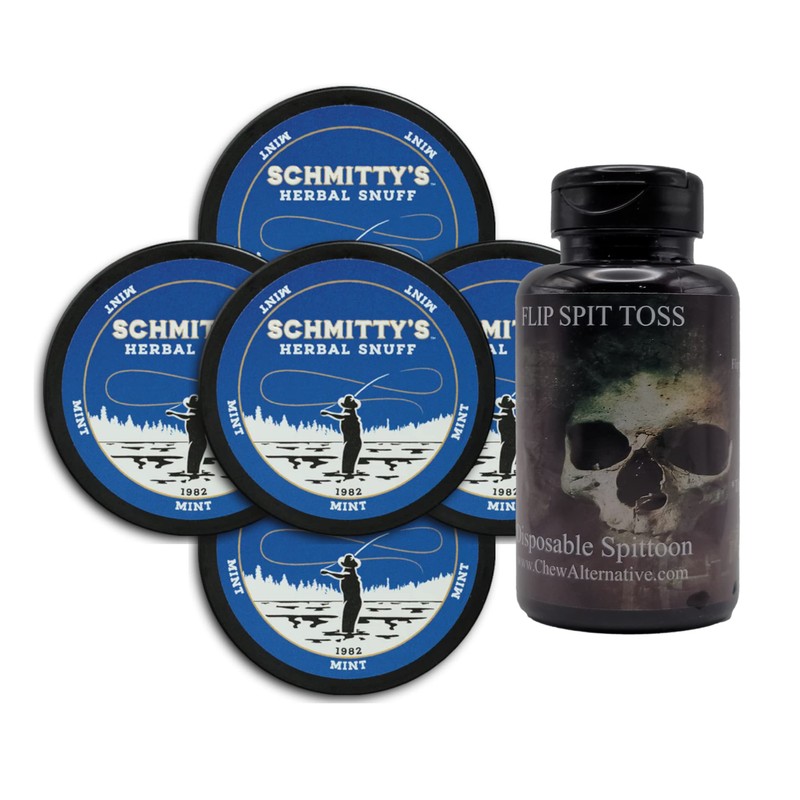 • Includes: 5 Cans of Schmitty's Herbal Snuff Mint and 1 DC Crafts Nation Mud Bud Spittoon.