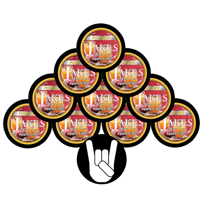 - Includes: 10 Cans of Jake's Mint Chew Apple Cider Pouch and 1 DC Crafts Nation Skin Can Cover.
