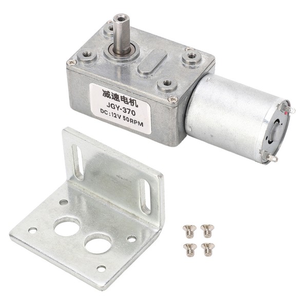 DC Gear Motor Single Shaft CW CCW Self Locking Worm Reduction Motor with Base for Label Printer Ovens 12V 50RPM