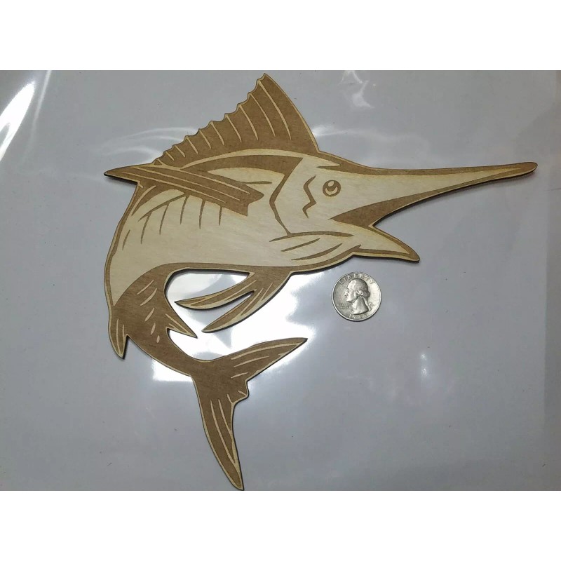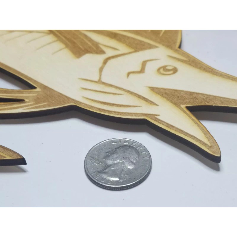DC Maker Labs Wooden Marlin Swordfish Engraved Wall Art 8x6 | Ocean, Nautical, & Beach Decor