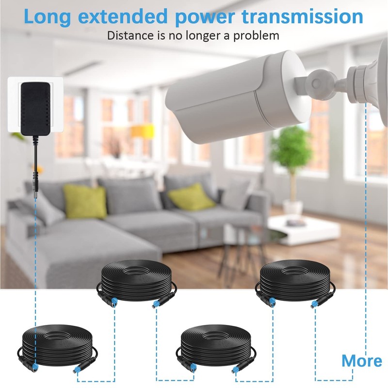 - 【Extra Long 】100ft/30m dc 12v power cord keeps your indoor or outdoor Wireless Security Camera connected over a much greater distance, even if it is far away from the plug.