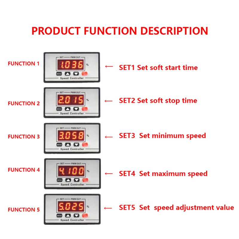 1、Designed with a LED Digital Display panel for easy reading and convenient setting of speed adjustment. 2、Can set the slow start and slow stop time of DC motor. 3、The maximum and minimum speed of the motor can be adjusted, and the speed increase can be set. 4、This is a simple and easy-to-use DC motor speed controller of small size, stable performance. 5、Easy to operate, can reduce the mechanical stress on the motor and shaft.