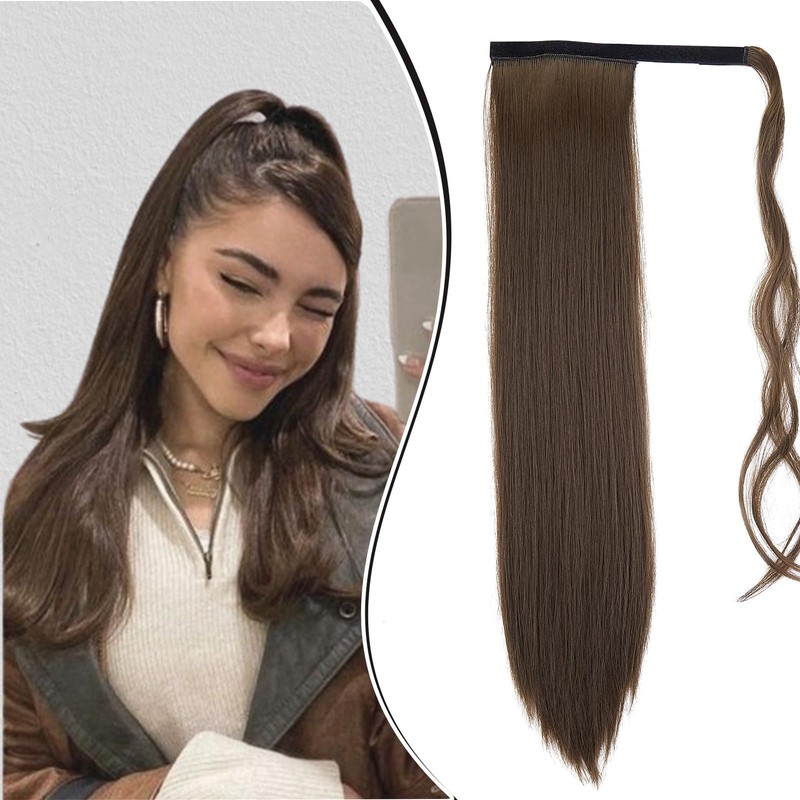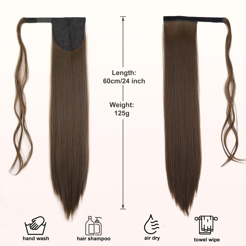 Dcbaboo Ponytail Extension Ponytail Hairpiece Braid Extensions Straight Long 60 cm Wrapped Ponytail Hair Extension Clip in Synthetic Fake Braid Extension Straight Hair Extension, Chestnut Brown
