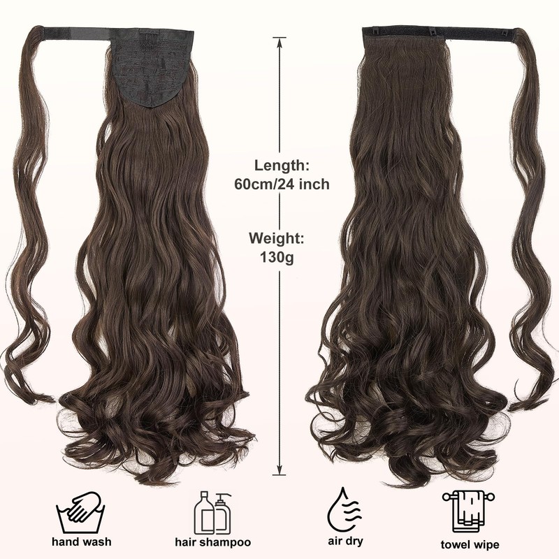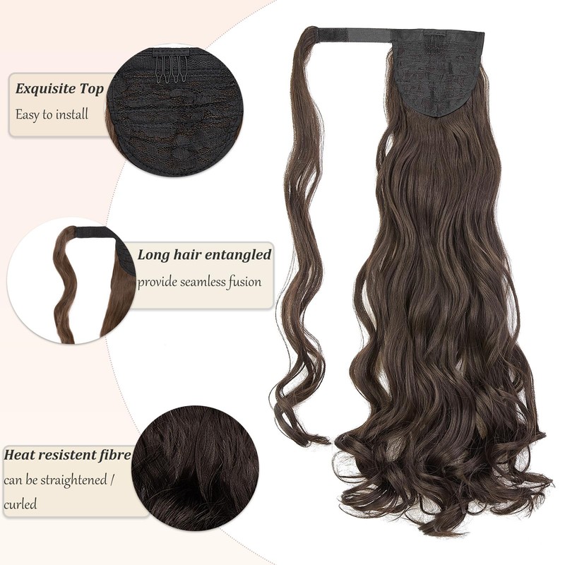 - Easy to wear and take off: wrap around ponytail with clip well sewn, no band, no glue, do not damage your scalp and hair. You can finish it in minutes.