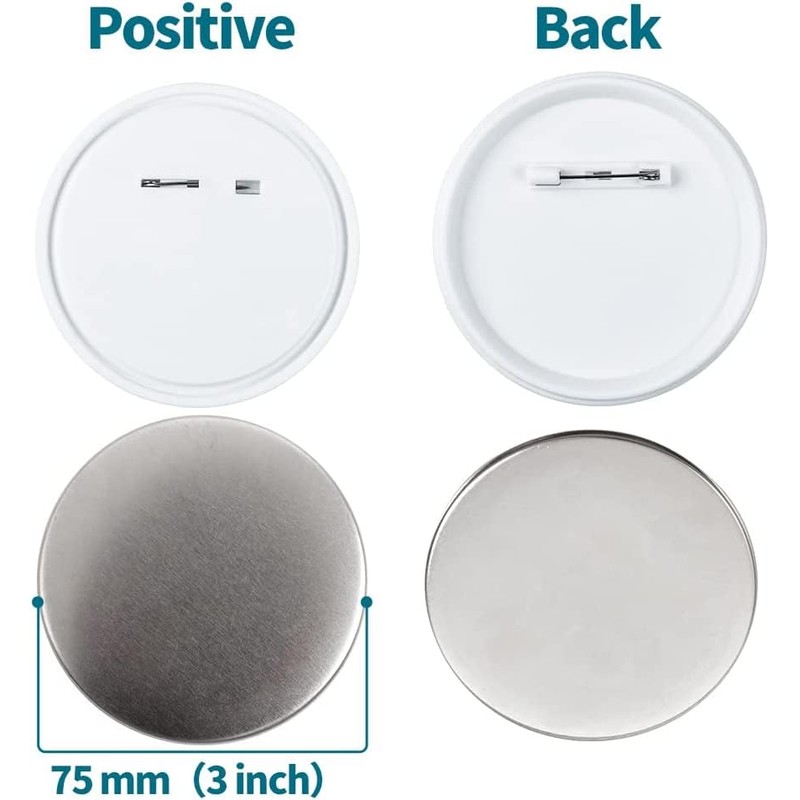 DCBADGE Button Maker Machine Parts of Blank Pin Back,Round Badge Making Supplies with Metal Cover&Plastic Button Back Cover&Clear Film&Blank Paper (White, 100 Sets pf 75mm)