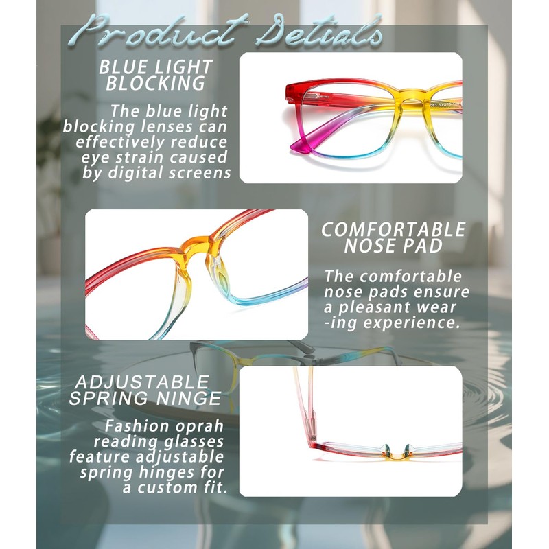 - 【Colorful and stylish styles】High aesthetic gradient design - a fashionable item for daily matching. Adopting two or three color gradient to modify face shape, suitable for trendsetters, bidding farewell to the aging label of traditional reading glasses.