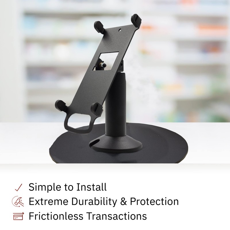 • Essential to enhance customer experience stand can tilt up to 60° and swivel a full 190°, making moving device from customer to merchant easier; improves payment transaction