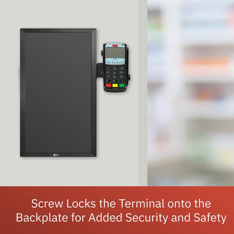 - Bracket is custom designed for larger payment devices; mount is available for the 19" and 23" monitors and for the following devices: Verifone Mx915/925, M400; Ingenico Lane/5000/7000/800, ISC 250, ISC 480 and PAX Px5, Px7