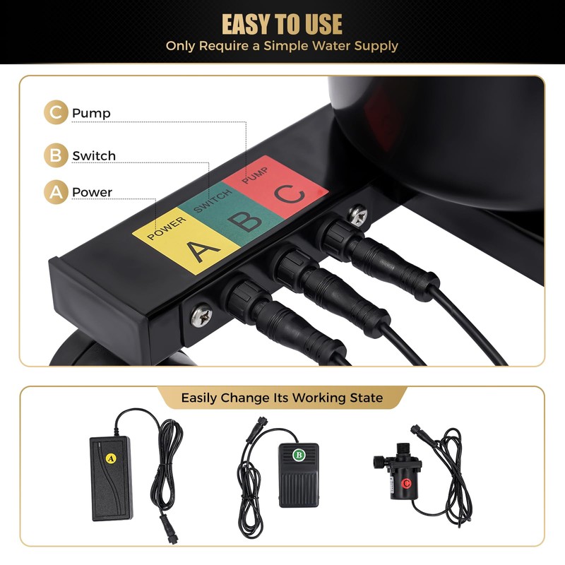 - Dual Bucket Design: One bucket with an electric pump is used for storing and pumping clean water, while the other bucket with a drainage pipe is used for receiving sewage. Each bucket has a large capacity (2.37 gallons), which is convenient to use and avoids the hassle of frequent water changes, improving your efficiency.