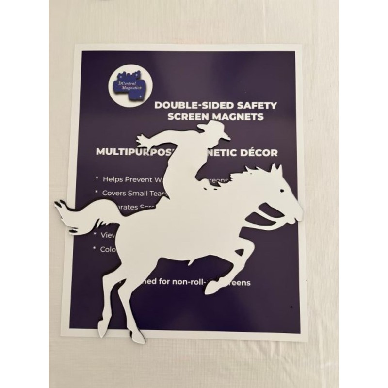 DCentral® Rodeo Flexible Vinyl Safety Screen Magnets: Double-Sided. White-Easier to See Day & Night. Decorative. Helps Stop Walking into Screens, for Non-RETRACTABLES, Size W 16.5" x L 7.5"